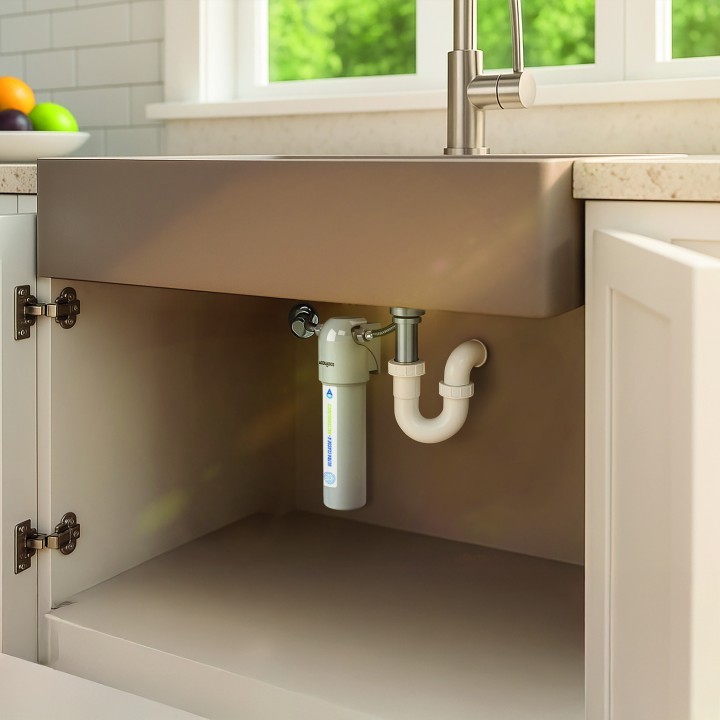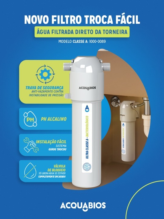 Filtro compacto e discreto, para instalação sob a pia. Oferece água filtrada direto na torneira, ideal para quem busca eficiência sem comprometer o visual da cozinha. Fácil instalação, água filtrada e segurança contra vazamentos (válvula automática de bloqueio da água).